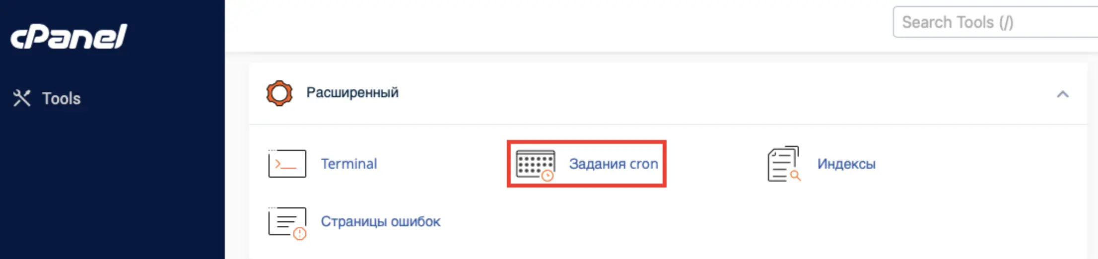 Щоб налаштувати Cron у cPanel, на головній сторінці панелі відкрийте розділ «Розширений → Завдання Cron».